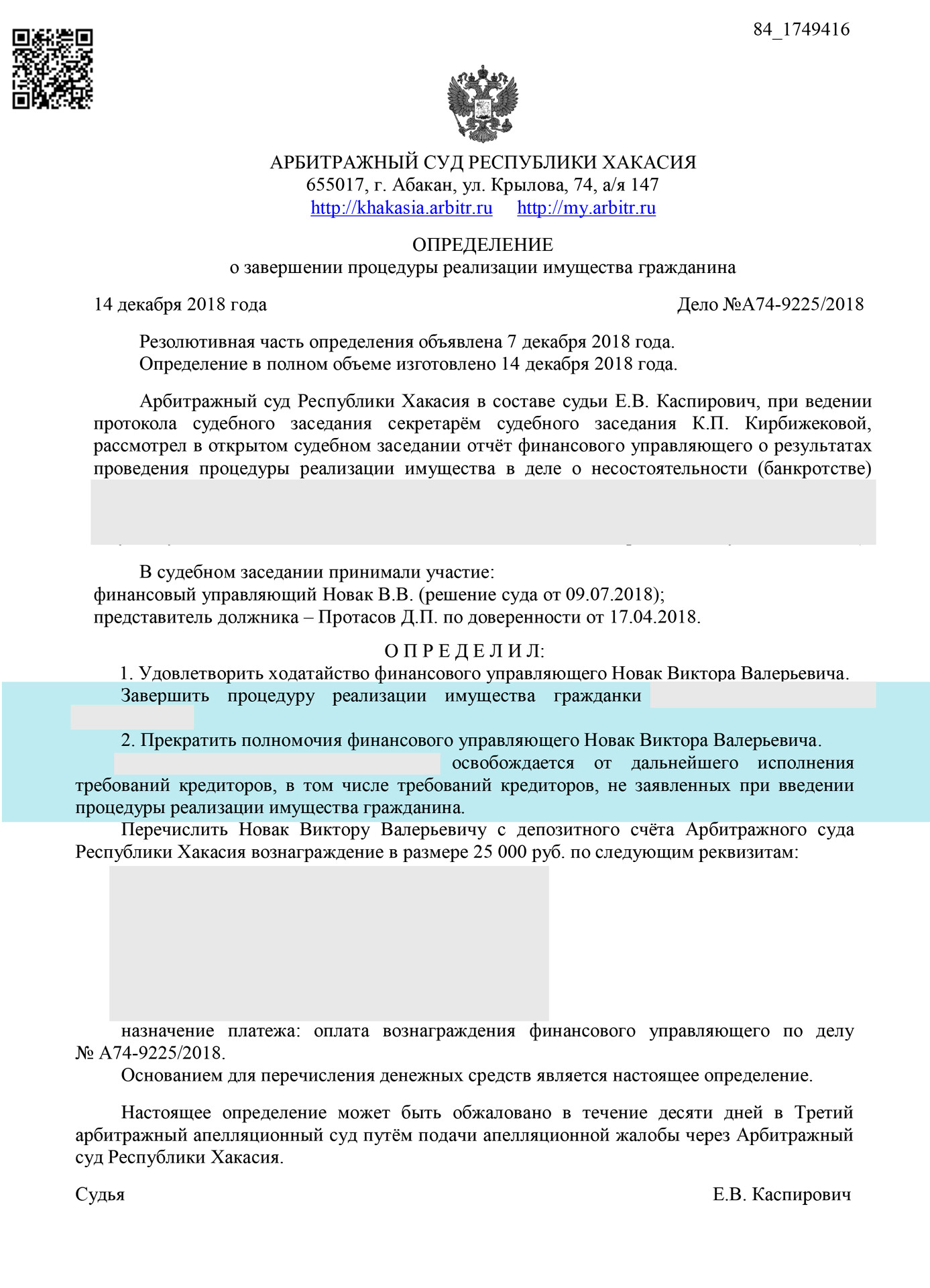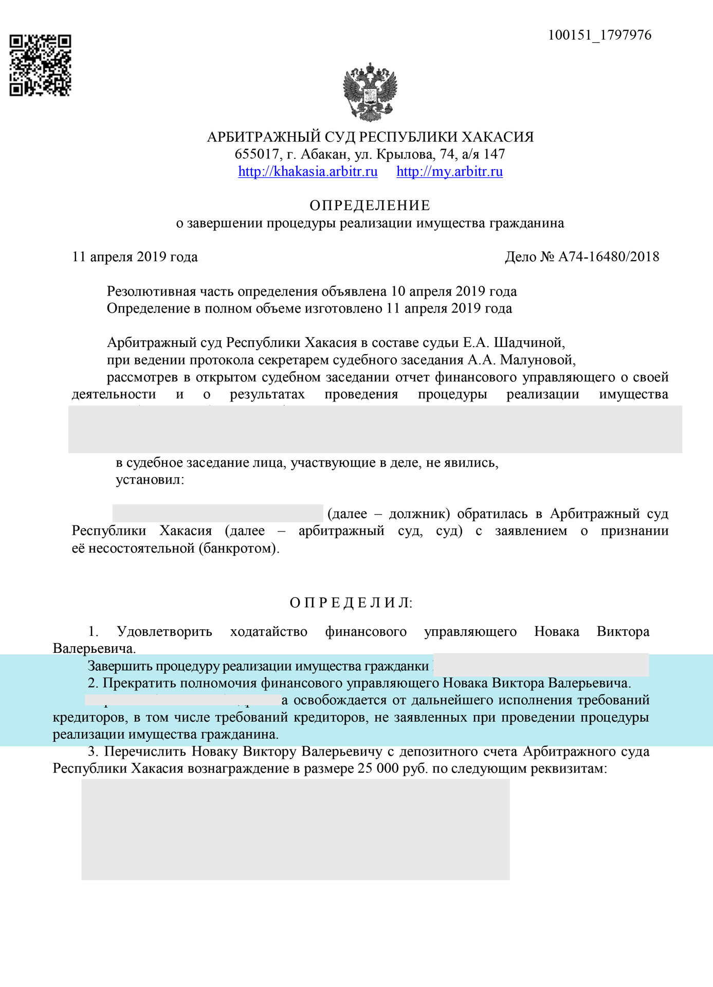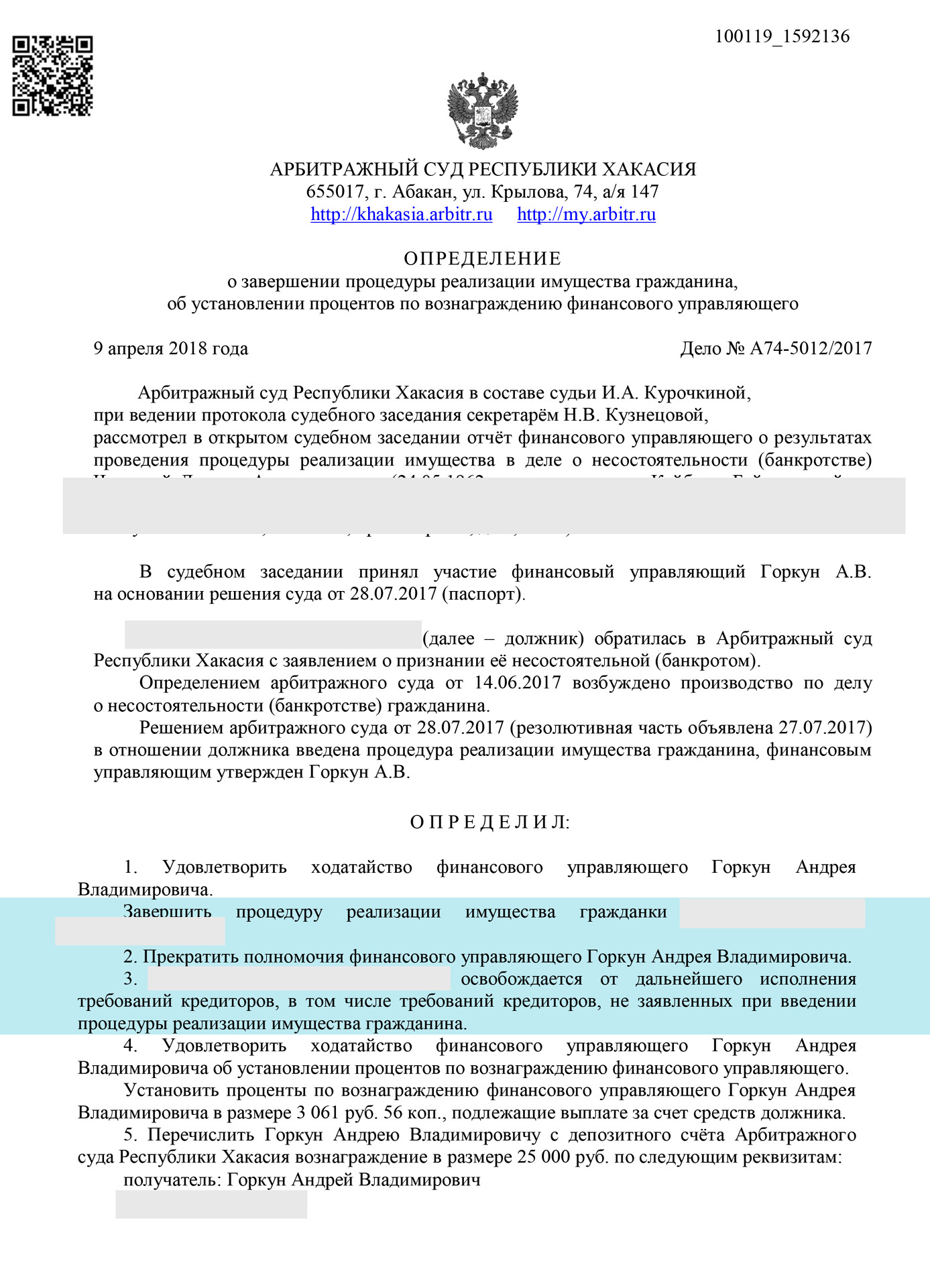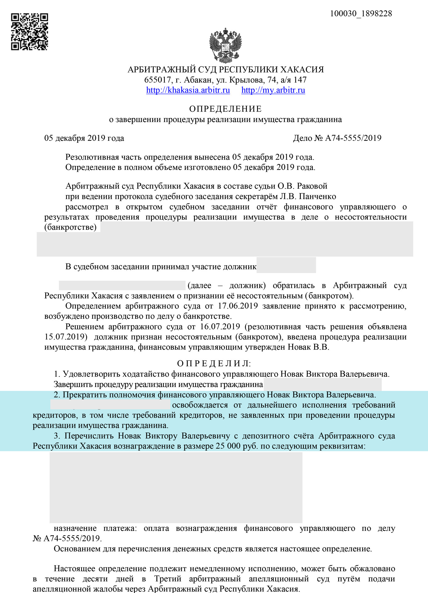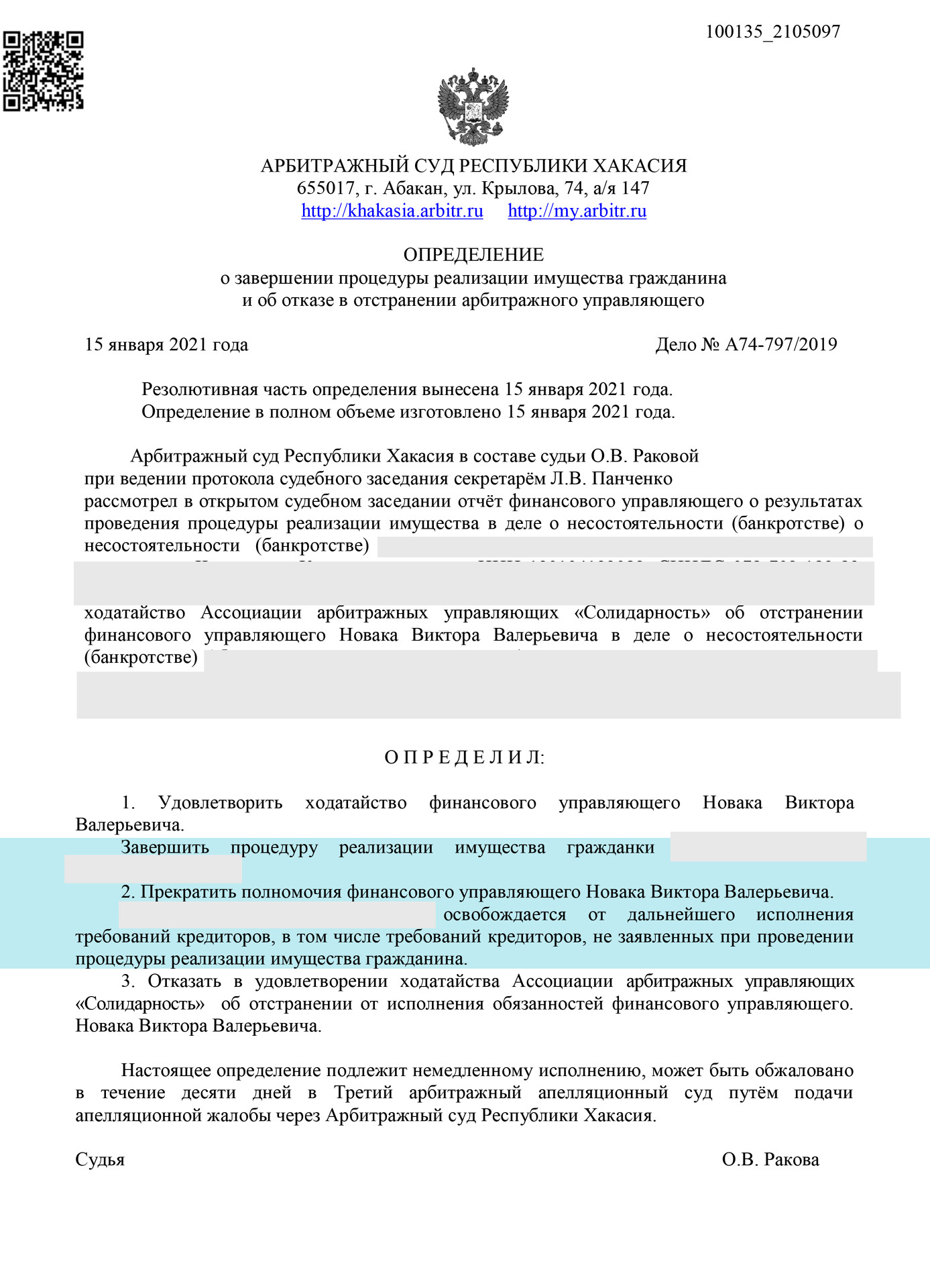 За длительное время нашей работы мы на практике проверили кандидатов и имеем отношения только с добросовестными и обязательными финансовыми управляющими, работающими именно в Республике Хакасия.